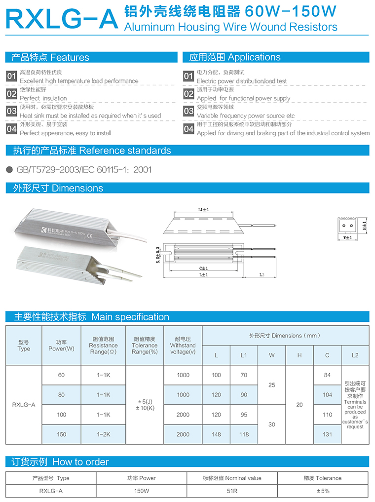 RXLG-A型铝外壳线绕电阻器